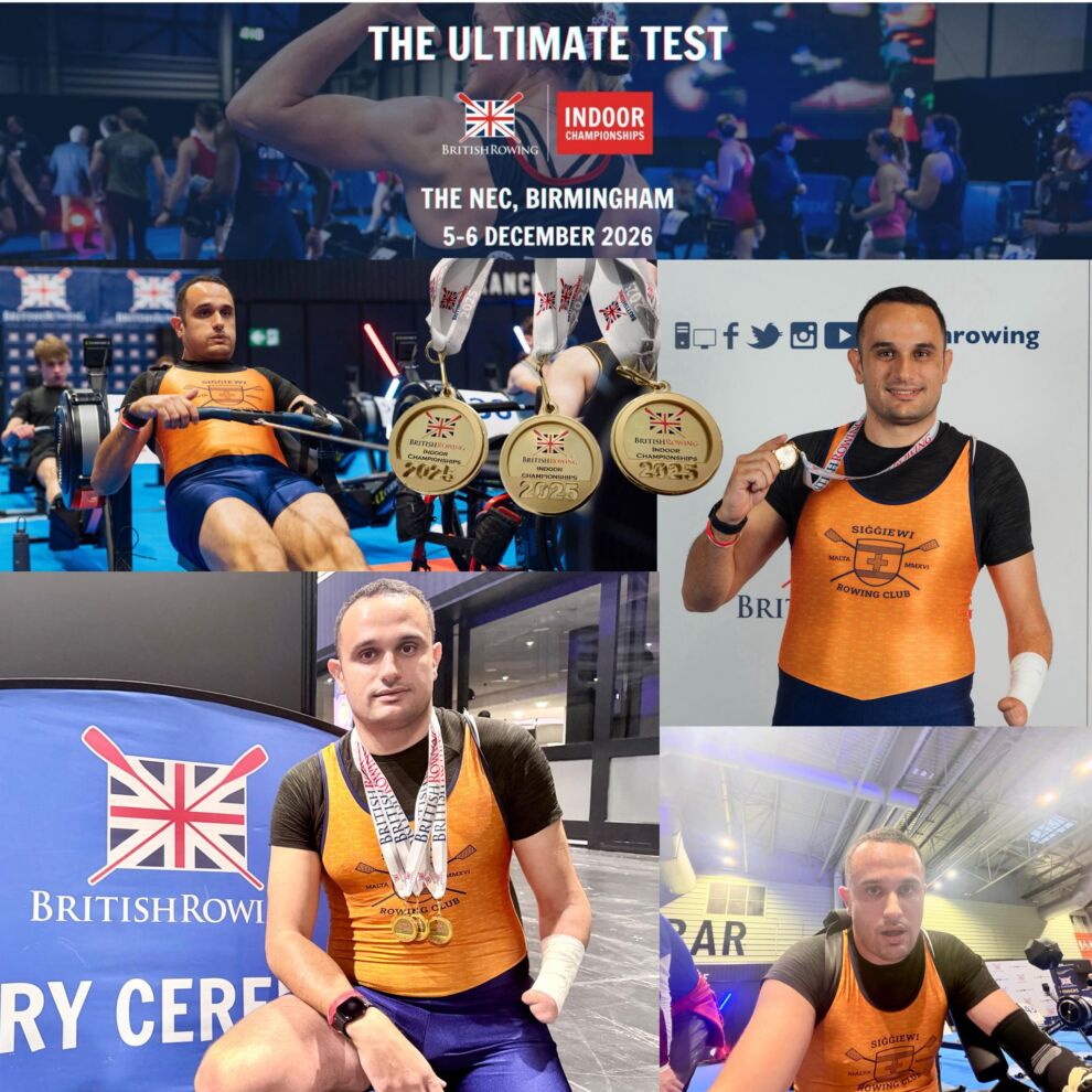 Riżultati mill-aqwa, medalji u tliet Rekords tad-Dinja ġodda mmarkaw il-parteċipazzjoni ta’ Malta fil-British Rowing Indoor Championships 2025.