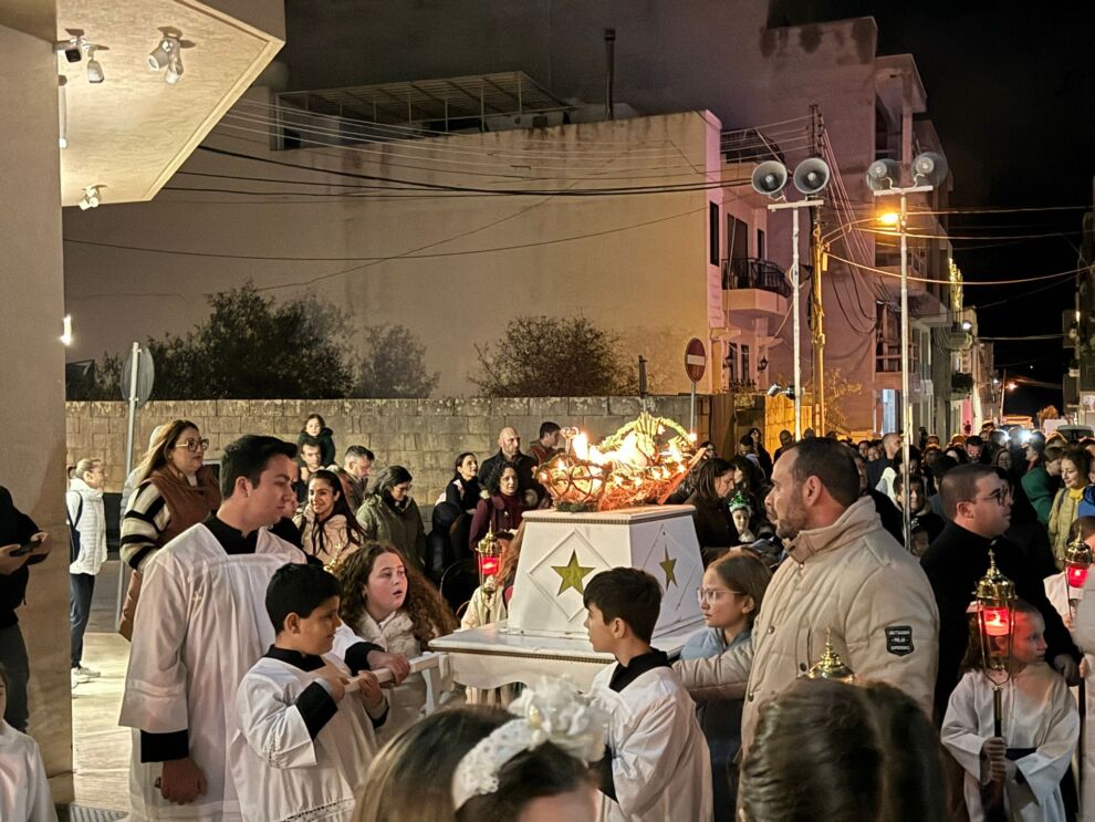 U fl-Imġarr numru kbir ta’ tfal u żgħażagħ refgħu ix-xbieha tal-Bambin fil-maxtura akkumpanjati minn fanali mdawwlin.