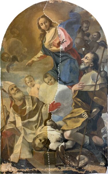 Il-pittura, li ġiet restawrata mir-restawraturi Maltin ReCoop bl-għajnuna tal-Gallerie d’Italia, turi lill-Verġni Marija ma’ Santu Rokku u San Nikola ta’ Bari, li jirrappreżentaw invokazzjoni popolari ta’ qaddisin fi żminijiet ta’ pesta. Dan il-kwadru tpoġġa ħdejn żewġ opri oħra ta’ Mattia Preti li juru l-istess qaddisin tal-pesta. Dawn il-kwadri normalment jinsabu fil-Knisja ta’ Sarria fil-Furjana.