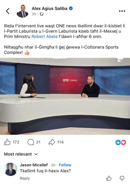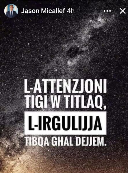 Intant, Jason Micallef ma ħadha tajjeb assolutament xejn u kixef l-inkwiet u taqbid kbir li hemm fiċ-Ċentru Nazzjonali Laburista. Dan hekk kif fuq il-midja soċjali, Micallef saħaq li l-attenzjoni tiġi u titlaq, iżda l-irġulija tibqa għal dejjem – botta ċara u tonda għal Abela u sħabu.