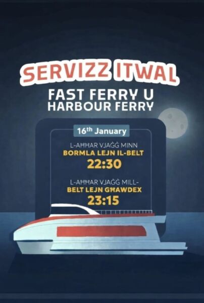 Matul l-attività beda jiċċirkola reklam li wera li s-servizzi tal-fast ferry ġew estiżi sabiex il-partitarji Laburisti jkunu jistgħu jattendu għar-rally tal-Labour. Fejn l-aħħar vjaġġ li sar minn Bormla lejn il-Belt kien dak tal-10:30pm u dak mill-Belt Valletta lejn Għawdex kien fil-11:15pm.