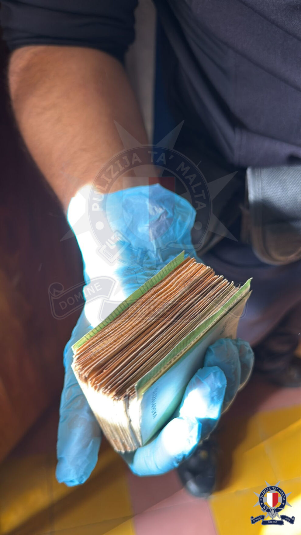 Waqt li l-pulizija kienu qegħdin jagħmlu l-verifiki neċessarji, fuq wieħed mill-persuni – raġel ta’ 30 residenti l-Marsa – instab b’ammont ta’ flus kontanti li qajmu aktar suspett. Għaldaqstant, minn tfittxijiet li saru fuqu, il-Pulizija sabet numru ta’ qratas b’sustanza suspettata kannabis sintetika.