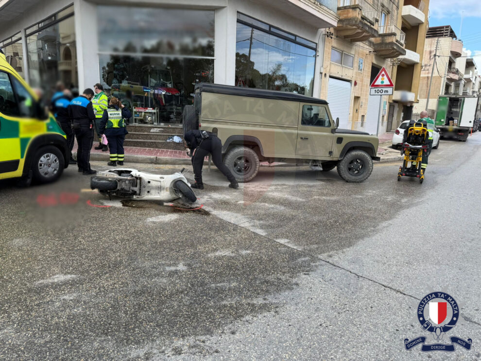 It-tieni inċident seħħ għall-ħabta tal-10:45 am, fi Triq Burmarrad, Burmarrad. Mill-investigazzjonijiet preliminari rriżulta li kienet seħħet ħabta bejn Land Rover misjuqa minn raġel ta’ 66 sena residenti San Pawl il-Baħar u mutur Piaggio Vespamisjuq minn raġel ta’ 33 sena residenti s-Swieqi.