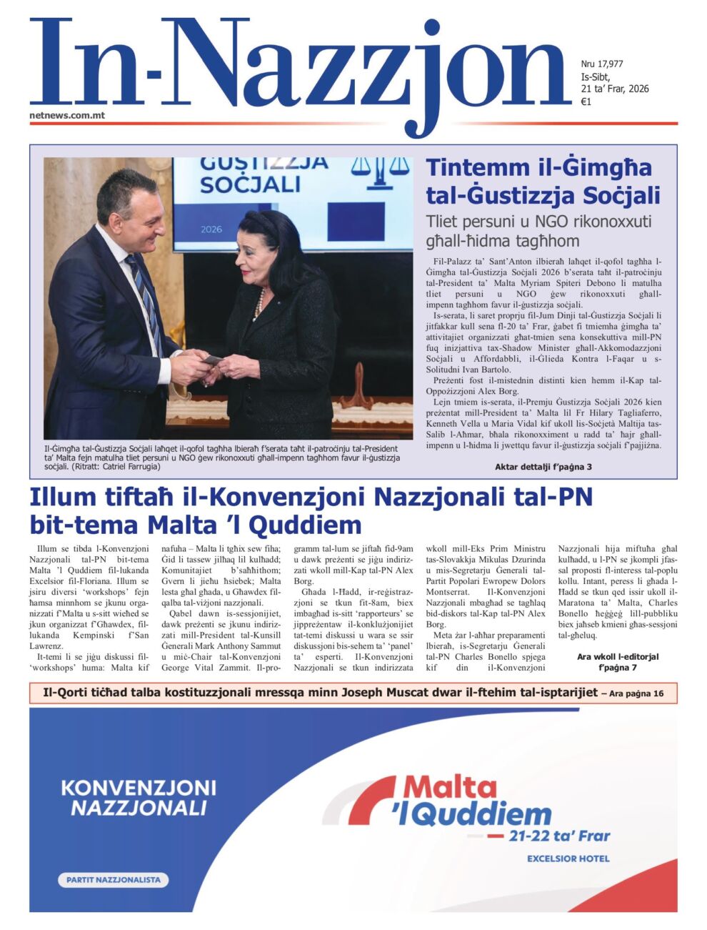 Is-Sibt tiftaħ il-Konvenzjoni Nazzjonali tal-Partit Nazzjonalista ‘Malta ‘l Quddiem’