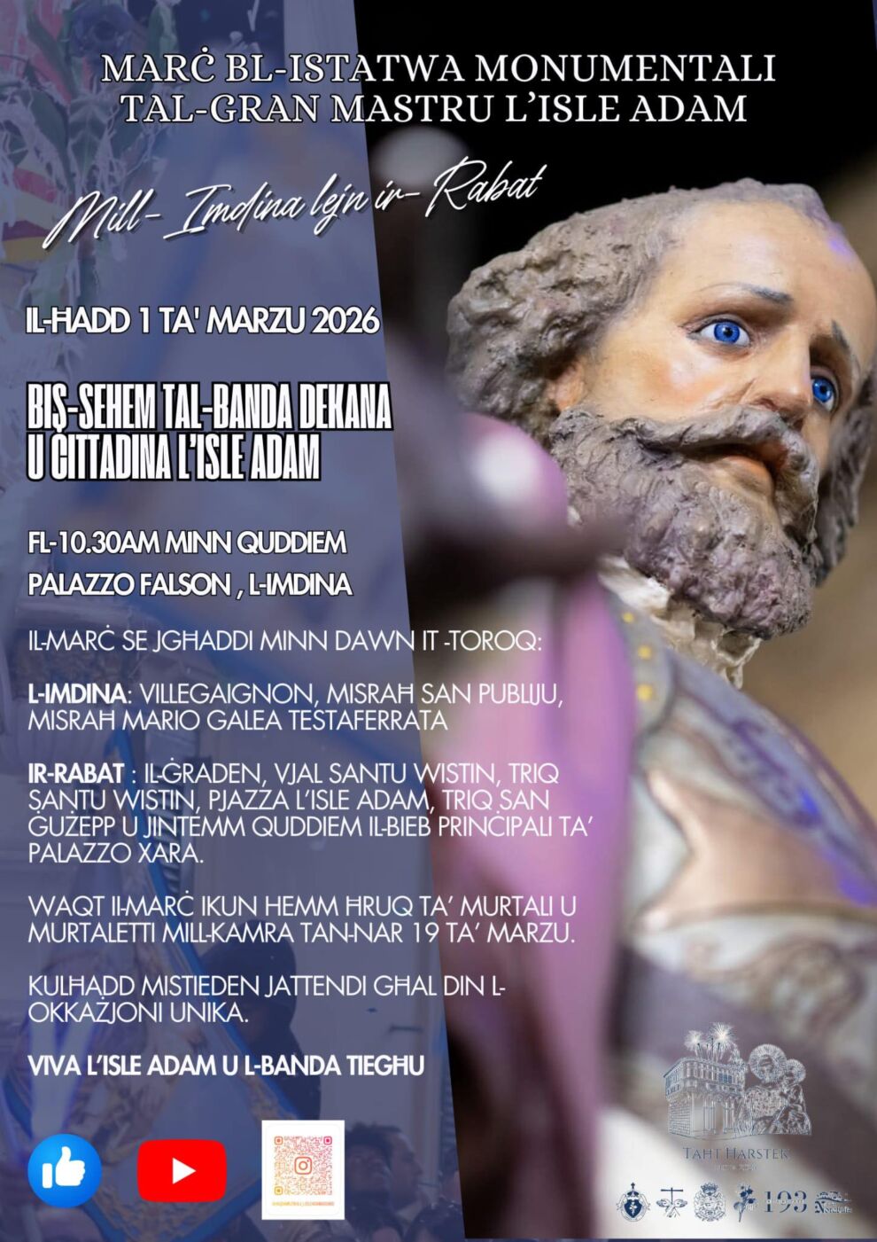 L-Arċikonfraternita’ ta’ San Ġużepp flimkien mal-Għaqda Mużikali L’Isle Adam ħabbru l-inawgurazzjoni uffiċjali mir-restawr tal-Istatwa Monumentali tal-Gran Mastru L’Isle Adam – opra li tifforma parti integrali mill-armar storiku, antik u tradizzjonali tal-festa ta’ San Ġużepp fir-Rabat u li hija patrimonju tal-istess Arċikonfraternità.