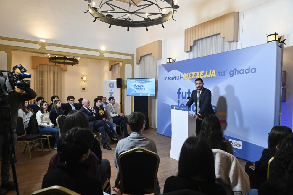 Il-Kap tal-PN Alex Borg indirizza liz-zgħażagħ li qiegħdin jipparteċipaw fil-programm ta’ formazzjoni ‘Future Leaders’ – sessjonijiet li qed ikomplu jgħinu fit-tiswir politiku taż-żgħażagħ li qed jipparteċipaw mal-Fondazzjoni AŻAD. Liema sessjonijiet kienu wkoll maqsuma fuq bosta suggetti u modules varji – minn sessjonijiet fuq tmexxija, ghall-mod kif taghmel kampanja elettorali.