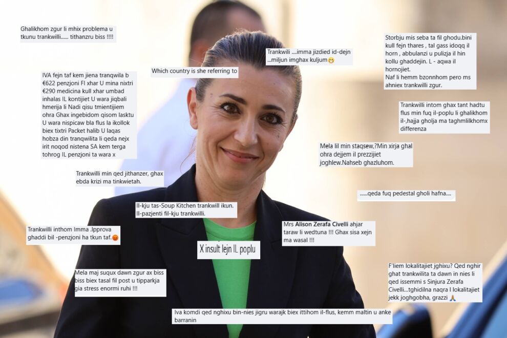 Dawn kienu biss ftit mill-baraxx ta’ kummenti bi kiritika qawwija, indirizzati lejn is-Segretarju Parlamentari Alison Zerafa Civelli; kummenti li waslu wara li hi stess iddikjarat li f’pajjiżna kulħadd qed jgħix ħajja trankwilla – minkejja li l-familji qed jaffaċjaw prezzijiet dejjem jogħlew.