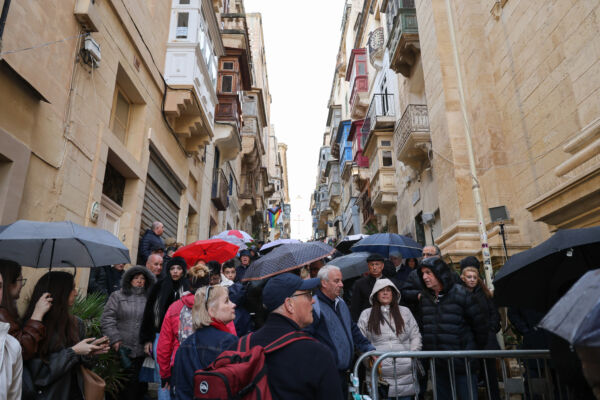 Għalkemm imbgħad, il-purċissjoni mill-Knisja tal-Patrijiet Franġiskani kellha titħassar minħabba r-riħ u l-maltemp.