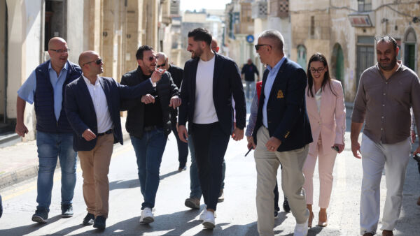 Alex Borg kien akkumpanjat f’Ħal Qormi minn Sarah u l-President tal-Parlament Ewropew u MEP Nazzjonalista Roberta Metsola, flimkien max-Shadow Ministers Ryan Callus u Jerome Caruana Cilia, l-MEP Peter Agius u anke nurmu ta’ kandidati f’isem il-Partit Nazzjonalista għall-elezzjoni Ġenerali li jmiss.