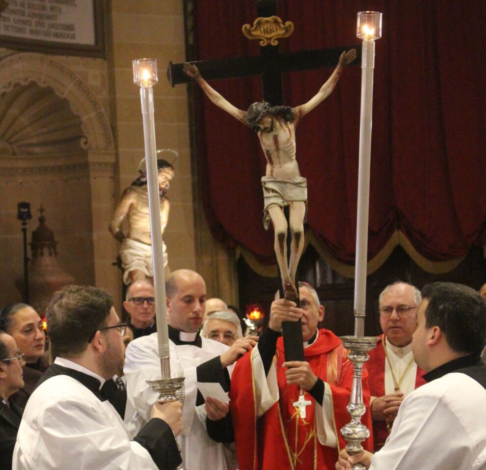 Fl-Azzjoni Liturġika tal-Adorazzjoni tas-Salib, il-Ġimgħa, l-Isqof ta’ Għawdex, Anton Teuma, ippreżenta riflessjoni profonda u mimlija tama dwar it-tbatija umana fid-dawl ta’ Ġesù Msallab.