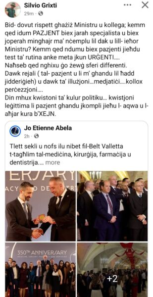 Fil-post tiegħu, Silvio Grixti saqsa wkoll kemm qed idumu l-pazjenti biex jieħdu test ta’ rutina anke meta jkunu urġenti. Dan hekk kif fl-aħħar xhur numru ta’ persuni li tkellmu ma’ Net News spjegawlna li tant qed idumu jistennew appuntament li saħansitra jkollhom immorru privat biex jinqdew.