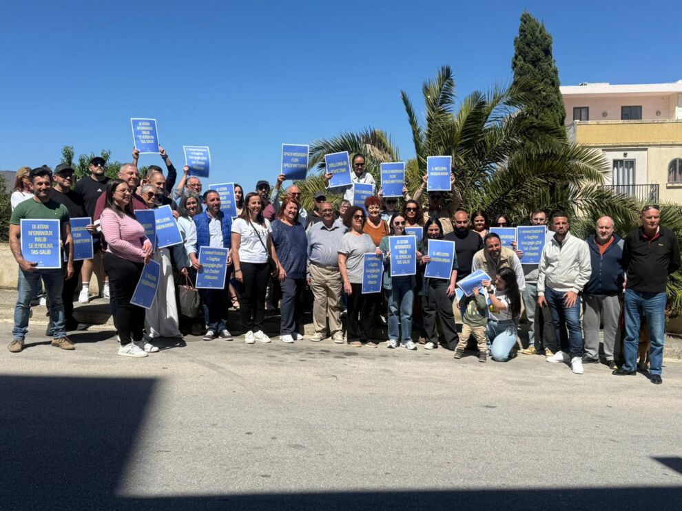 Kien dan l appell li wasslu r residenti tal-Mellieħa meta nġabru fi protesta fiż-żona Tas-Salib sabiex jipprotestaw żvilupp ta’ binja li se tkun tikkonsisti fi 28 appartament, u guesthouse bi 12-il garaxx taħt l-art, 21 car space, pool, spa, gym, bar u zona għall-breakfast u li se tkun qed tinbena f’art verġni.