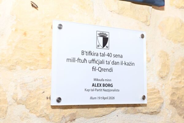 Apparti minn hekk, Alex Borg kixef lapida waqt ċerimonja li saret fl-għeluq l-40 sena mill-ftuħ tal-Każin tal-Partit Nazzjonalista fil-Qrendi dan filwaqt li saħaq fuq l-importanza li l-politiċi jżommu kuntatt kontinwu man-nies għaliex hekk biss tista’ titfassal politika li tindirizza l-ħtiġijiet tal-poplu Malti u Għawdxi kollu.