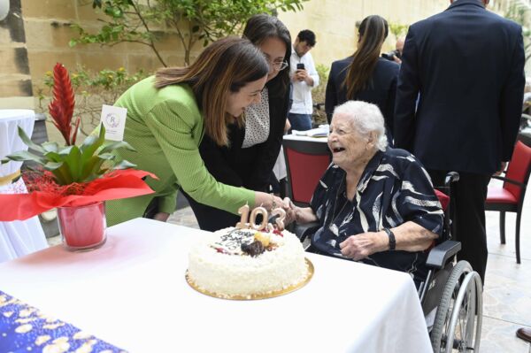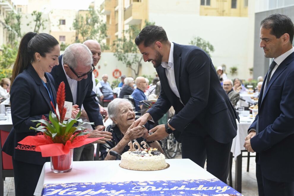 Mument mill-aktar ħelu matul din iż-żjara kien propju x’ħin l-anzjani kienu qed jiċċelebraw għeluq snin waħda mir-residenti – hekk kif Giuseppa Frendo għalqet 103 snin. Hawnhekk, Alex Borg awguralha l-isbaħ xewqat f’dan il-jum tant speċjali kif ukoll kien preżenti waqt li Giuseppa qasmet l-kejk tagħha.