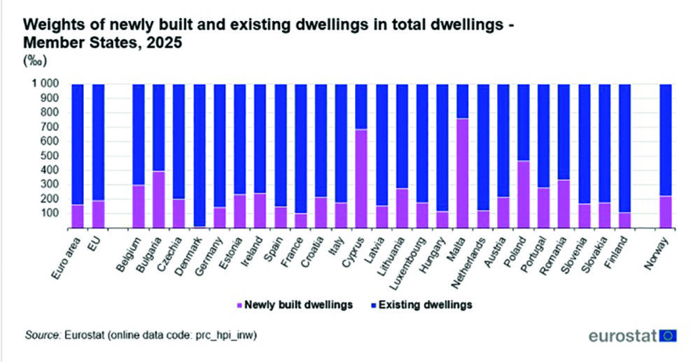 Mill-istess ċifri tal-Eurostat jirriżulta li 36.6% biss għandhom dar tagħhom, ċifra fost l-inqas fl-UE. 63.1% għandhom appartament. Il-bqija jgħixu f’postijiet bħal karavans.