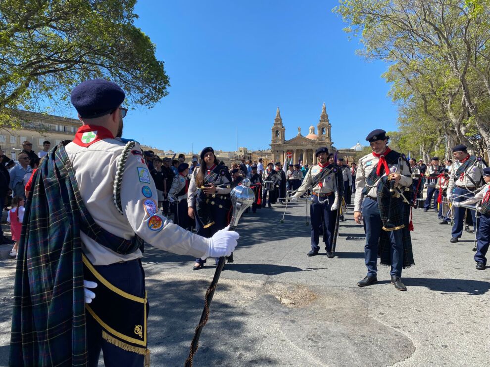 Mlibbsa bil-maktur u l-badges li jagħtu identità lill-uniformijiet, Beavers u Dolphins, Cubs u Brownies, Guides u Scouts, Ventures u Rangers, Rovers u Senior Rangers – mmexxija mill-leaders u l-mascots tagħhom – sellmu lill-President ta’ Malta,, biswit il-Palazz tal-President fi Pjazza San Ġorġ.