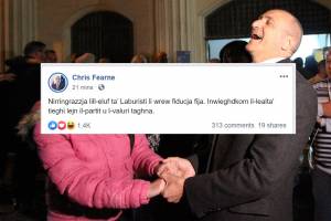 L-ewwel kliem ta’ Chris Fearne fuq Facebook malli dalgħodu qam mit-tkaxkira li ġarrab kienu dawn: “Nirringrazzja lill-eluf ta’ Laburisti li wrew...