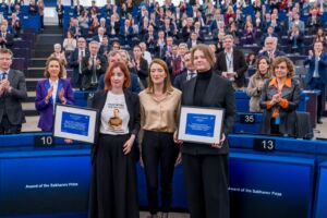 F’ċerimonja li saret fi Strasburgu, il-President Roberta Metsola tat il-Premju Sakharov 2025 lir-rappreżentanti taż-żewġ ġurnalisti, li jinsabu l-ħabs fil...