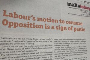 “Il-mozzjoni tal-lejla hi biss sinjal ta’ paniku”. Hekk iddikjara l-editorjal tal-gazzetta MaltaToday fil-ġurnata li fiha l-Labour se...