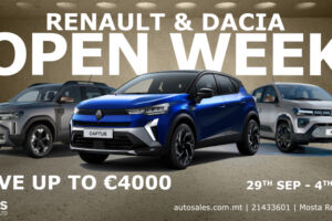 L-Open Week ta’ Renault u Dacia jirritorna b’offerti esklussivi fuq għażla vasta ta’ vetturi elettriċi u Hybrid bejn id-29 ta’ Settembru u l-4 ta’ Ottubru...