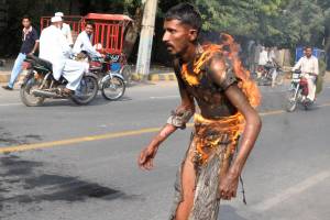 Raġel fil-Pakistan li ried jipprotesta b’mod spettakolari kontra d-dipartiment tat-taxxa spiċċa jagħti n-nar lilu nnifsu fl-inħawi ta’ Multan. Ir-rapporti miż...