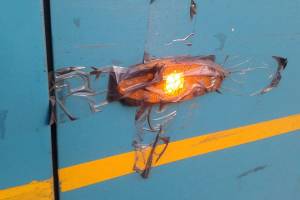 Karozzi tal-linja li qed tiżviluppalhom xi tip ta’ ħsara qed jissewwew temporanjament bit-tejp, kif jidher f’din is-sensiela ta’ ritratti li...