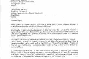 MaltaRightNow.com qed jippubblika l-ittra mibgħuta lill-Prim Ministru Joseph Muscat u lill-Ministru Manwel Mallia mill-Assoċjazzjoni tal-Pulizija. L...