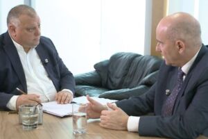 Alex Attard jitkellem ma’ Frank Portelli, President tal-Caritas Malta Epilepsy Association