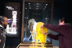 Erba’ persuni ġew arrestati wara li dawn tefgħu l-krema u l-apple crumble lejn vetrina li fiha kien hemm l-Kuruna imperjali tal-Istat fit-Torri ta’...