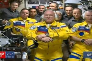 Tliet kosmonawti Russi, fl-aħħar sigħat, waslu fl-Istazzjon tal-Ispazju Internazzjonali lebsin il-kuluri tradizzjonali tal-Ukrajna ….Dan meta huma dehru...