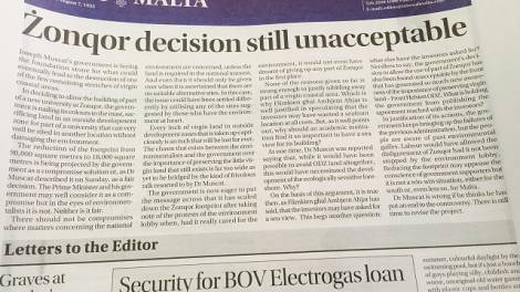 Filwaqt li l-ammont ta’ art ODZ li se tkun sagrifikata għall-proġett taż-Żonqor tnaqqas, xorta waħda kienet tippreferi li l-proġett kien ikun magħmul kollu fuq...