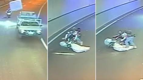 F’dan il-filmat li qed idur fuq il-midja soċjali u l-istazzjonijiet tal-aħbaijiet internazzjoni, sewwieq ta’ mutur jidher jiskansa dak li seta’ kien...