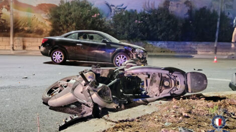 Raġel ta’ 42 sena, residenti Birkirkara, jinsab fil-periklu tal-mewt wara li ħabat bil-mutur tiegħu tal-għamlu Honda ma’ karozza Renault Megane. L-inċident...
