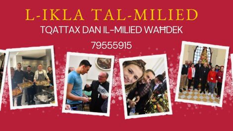 Caritas Malta qed tistieden lill-persuni li jinsabu weħidhom jew m’għandhomx il-mezzi sabiex din is-sena jqattgħu Milied b’dinjità sabiex jieklu flimkien...