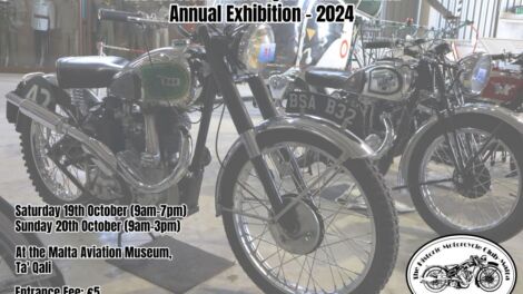 Il-Historic Motorcycle Club – Malta ser ikun qiegħed itella’ wirja ta’ muturi storiċi fil-Mużew tal-Avjazzjoni f’Ta’ Qali, nhar is-Sibt 19 u l-Ħadd 20 ta’ Ottubru. F’din...