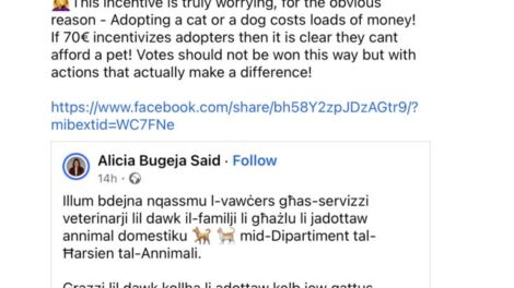 Vouchers li jammontaw għal €70 mhux ser ikopru għall-ispejjez biex tadotta kelb jew qattus. Dan kien is-sentiment espress mill-attivista Moira...