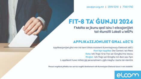 Mit-12 ta’ Frar se jiftħu l-applikazzjonijiet għal min jixtieq iservi bħala Assistent Kummissjonarju Elettorali (AEC) matul l-elezzjonijiet tal-Kunsilli Lokali u...
