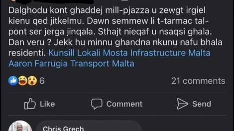 Is-Sindku Laburista tal-Mosta Chris Grech, magħruf bħala ‘In-Najs’, f’dawn il-jiem għaffiġha bil-kbir hekk kif meta mistoqsi dwar xogħlijiet fil-lokalità tal-Mosta...