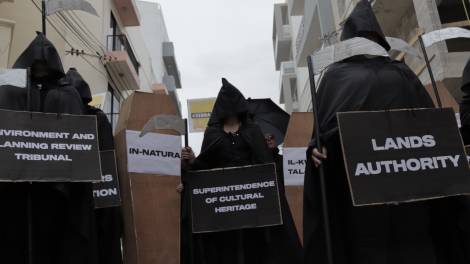 B’azzjoni simbolika quddiem l-uffiċini tal-Assoċjazzjoni tal-Iżviluppaturi (MDA) dalgħodu, grupp ta’ attivisti ġibdu l-attenzjoni għall-mod kif il-politiċi, l...