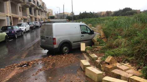 Karozza li kienet ipparkjata spiċċat b’xi ħsarat wara li ċeda ħajt b’konsegwenza tal-maltemp li ħakem lill-gżejjer Maltin f’dawn l-aħħar sigħat. Dan l...