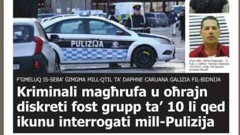 L-arresti tal-pulizija b’rabta mal-qtil ta’ Daphne Caruana Galizia jiddominaw l-istorja ewlenija tal-ġurnal In-Nazzjon. Stejjer oħra jittrattaw ir-reazzjoni...