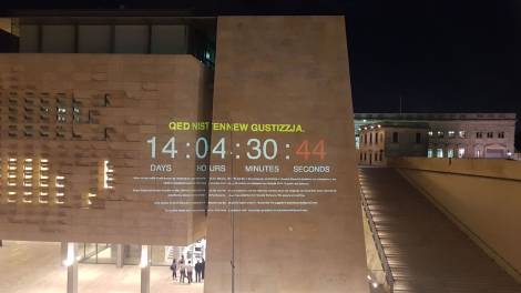 Projection mal-faċċata tal-Parlament fil-ħin li bdiet tiġi diskussa l-mozzjoni tal-Kap tal-PN u tal-Oppożizzjoni Adrian Delia b’appell biex issir ġustizzja. Il...
