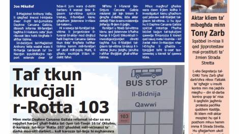 L-istejjer ewlenin tal-ġurnal In-Nazzjon jibqgħu dominati mill-iżviluppi dwar il-qtil makabru tal-ġurnalista Daphne Caruana Galizia. In-Nazzjon jirrapporta...