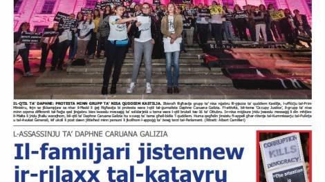 Illejla nisa inġabru quddiem Kastilja, l-uffiċċju tal-Prim Ministru, fejn se jikkampjaw sa nhar il-Ħadd li ġej bi protesta wara l-qtil ta’ Daphne Caruana Galizia...