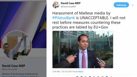 L-aġir ta’ Pilatus Bank fil-konfront tal-media Maltija hu inaċettabbli. Sostna dan permezz ta’ twitter, David Casa, l-kap tad-delegazzjoni tal-Partit...