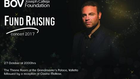 Il-ħames edizzjoni tal-Kunċert għall-Ġbir ta’ Fondi tal-Fondazzjoni BOV Joseph Calleja se ssir nhar il-Ġimgħa, 27 ta’ Ottubru 2017 fil-Kamra tat-Tron fil-Palazz tal-Gran...