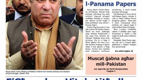 L-istejjer ewlenin ta’ In-Nazzjon jittrattaw ir-reżenja tal-Prim Ministru tal-Pakistan minħabba l-Panama Papers u r-reazzjoni tal-Partit Nazzjonalista li jgħid li...