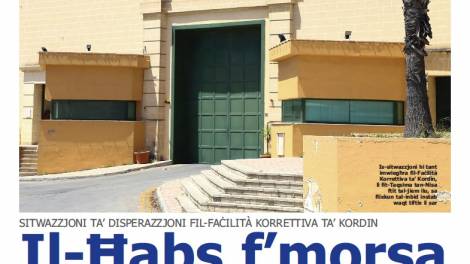 In-Nazzjon jirrapporta l-aħħar żviluppi dwar is-sitwazzjoni ta’ disperazzjoni fil-Faċilità Korrettiva ta’ Kordin, bit-titlu ewlieni tal-ġurnal: ‘Il-Ħabs f’morsa’. Joe...