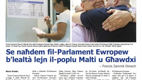 L-istorja b’rabta mal-ewwel kummenti li ta l-Membru Parlamentari Ewropew ġdid, Francis Zammit Dimech, wara li kien elett biex ħa post Therese Comodini Cachia li ġiet...