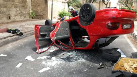 Jidher li għal xi raġuni l-karozza nqalbet u it-tnejn spiċċaw maqbuda ġewwa fiha.